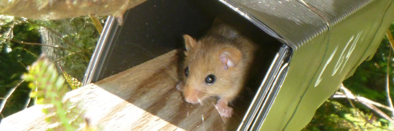 Foto: Haselmaus in einer künstlichen Niströhre, die zum Nachweis der Art eingesetzt werden. | Ⓒ F. Kurz