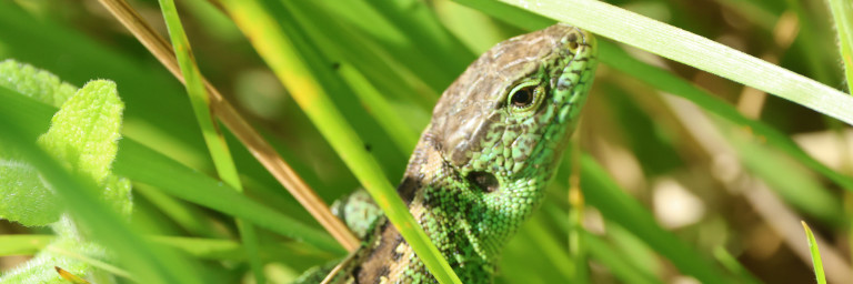 Foto: Die Böschungen im Eingriffsraum sind von Zauneidechsen (im Bild ein adultes Männchen) und Mauereidechsen besiedelt. | Ⓒ F. Kurz