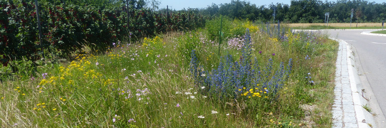 Foto: Blütenreiche Straßenbankette im Eingriffsraum | Ⓒ B. Disch
