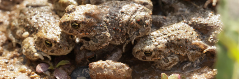 Foto: Junge Kreuzkröten bei der Umsiedelung aus dem Baufeld. | Ⓒ F. Kurz