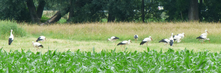 Foto: Weißstörche (Ciconia ciconia) bei der Nahrungssuche in der Dietenbachniederung | Ⓒ B. Disch