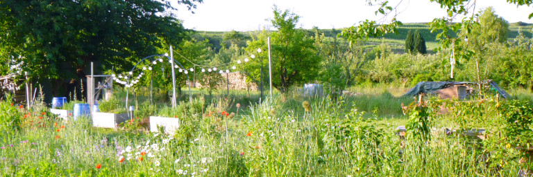 Foto: Im Bereich des geplanten Regenrückhaltebeckens bestehen artenreiche und kleinparzellige Gärten und Streuobstbestände, die bei der Anlage des Regenrückhaltebeckens zu berücksichtigen sind. | Ⓒ F. Kurz