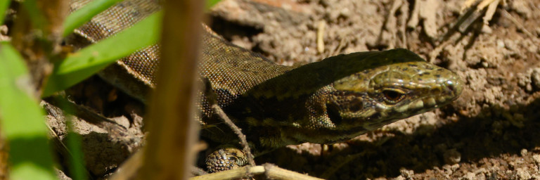 Foto: Die Böschungen im Eingriffsraum sind von Zauneidechsen (im Bild ein adultes Männchen) und Mauereidechsen besiedelt. | Ⓒ F. Kurz