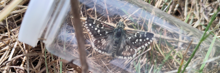 Foto: Auf den Probeflächen kam auch der Zweibrütige Würfel-Dickkopffalter (Pyrgus armoricanus) vor. | Ⓒ C. Seifert